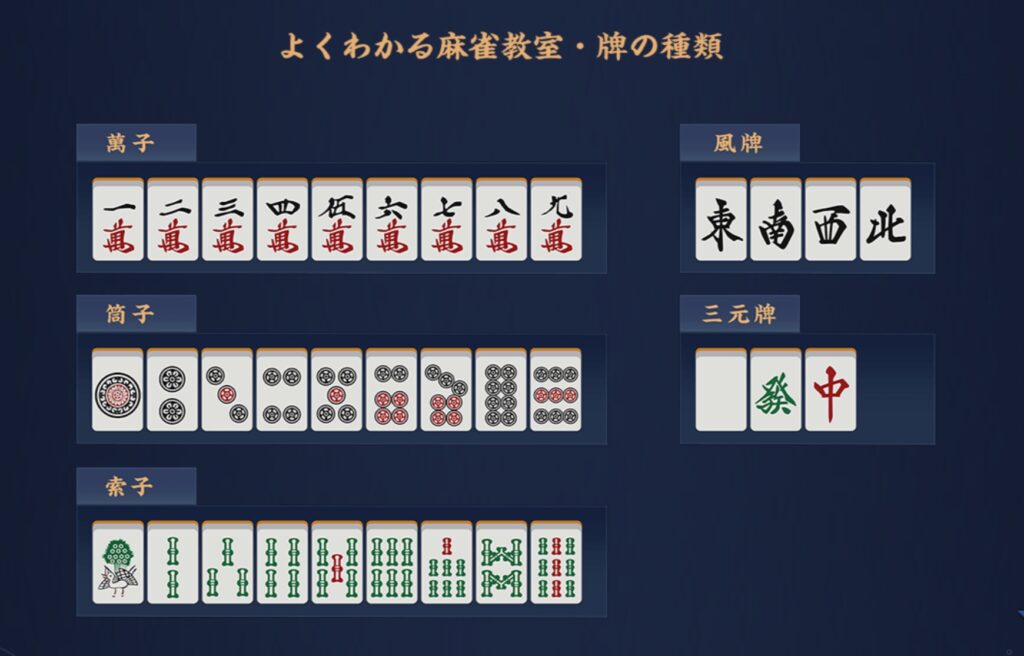 これら全ての牌が4個ずつ存在しています。